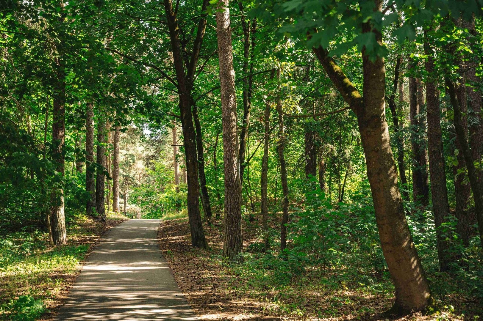 Nuo Kauno marių direkcijos lankytojų centro Miško takas veda link Rokų miško ir Miškininkų, Kelmyno, Muraškinės, Žarstos, Garšvės ir Rokelių gatvėmis apsuka nemažą ratą aplink Kauno pietryčių dalies priemiesčius, pasiekia Kauno miestą, kerta Marijampolės kelią (Nr. 139) ir Balčkalnio gatve šiaurės kryptimi leidžiasi link Panemunės mikrorajono. Prie Kauno technologijos universiteto Inžinerijos licėjaus stadiono Miško takas nusileidžia iki Vaidoto gatvės, šaligatviu toliau keliauja iki Baterijos plento, kur pasuka į kairę link Panemunės šilo. Apie trečdalį Kauno miesto ploto užima parkai ir kitos gamtinės teritorijos. Miško takas keliauja miestu per žaliausius jo plotus. Apie 2,5 km jis vinguriuoja per Panemunės šilą, kuriame gausu poilsio vietų ir yra net paplūdimys. Toliau Trijų mergelių tiltu Miško takas kerta Nemuną, veda per Gričiupio rajoną, suka palei Kauno zoologijos sodą, driekiasi Kauno Ąžuolynu ir už Lietuvos sporto universiteto pasiekia Vytauto parką, kurio laiptais nusileidžia iki Laisvės alėjos pradžios ir tęsiasi iki Nepriklausomybės aikštės su įspūdinga Įgulos bažnyčia viduryje bei jaukiomis kavinukėmis aplink.