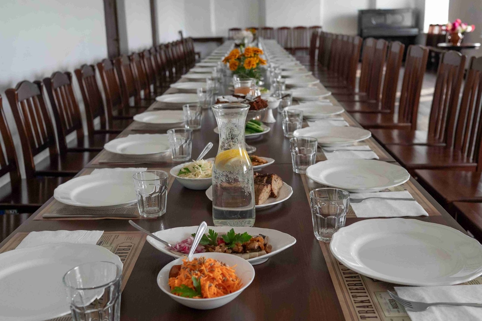 Iš anksto užsisakius, skėmiškės paruošia vaišes kaip senovėje – nuo trintos daržovių sriubos ir krosnyje troškintos mėsos iki keptų bulvių, raugintų daržovių ir naminių gardėsių.